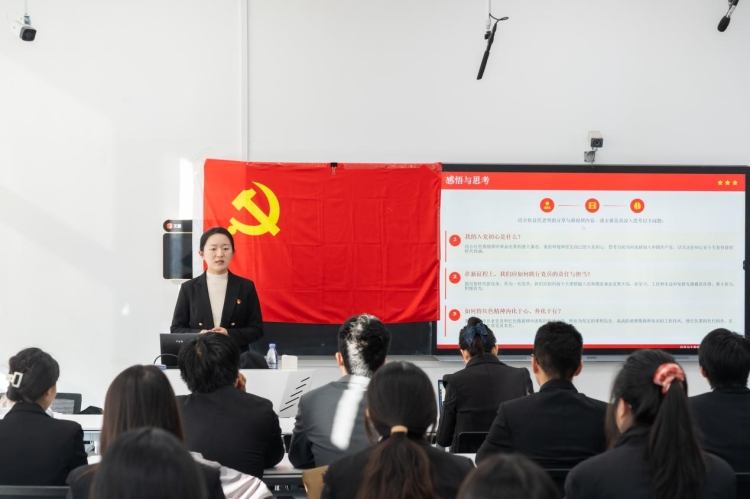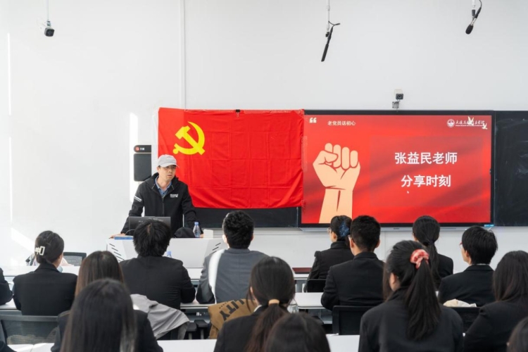 微视频观看结束后,张益民老师作为老党员代表上台分享初心故事。他结合自身在延安的学习实践经历,谈到预备党员转正前赴延安实地学习的重要意义:“在电视上看到窑洞或许只是觉得新奇,但真正站在那片土地上,听着讲解员讲述细节,才能真切体会到革命年代党的决策为何正确,才能明白我们党如何从艰苦环境中走向全国解放。” 针对当下信息爆炸的环境,张老师特别叮嘱党员同志:“面对网上纷繁复杂的信息,尤其是关于企业发展、社会调整的言论,不能只看表面,要善于调查、慎重发言。就像看到企业裁员,不能简单认为从业者会‘躺平’,要看到背后的结构性调整,更要从航母下水等国家成就中,坚定对中国未来发展的信心——国家展示的成就往往已十分成熟,下一代技术也在稳步推进,中国成为世界领先力量是可预见的趋势。”他还结合党员职责强调:“为人民服务不是抽象口号,在校时提升知识技能、涵养综合素质,不给集体添麻烦;未来走上岗位,公平公正处理人际关系、构建良好环境,都是践行初心的具体行动。”
