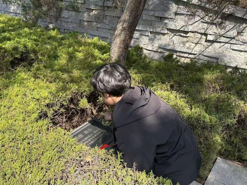 默哀礼毕,大家手持抹布、清洁刷等工具,分工协作、相互配合,怀着敬畏之心轻拭烈士碑体的每一处尘埃,动作轻柔而认真细致,以这一质朴而真诚的行动,寄托对革命先烈的追思与敬仰,让承载英雄不朽功绩的碑体始终洁净如新。随后,全体人员走进纪念馆展厅,循着历史脉络依次参观展陈区域,认真端详泛黄的历史照片、斑驳的烈士遗物与逼真的历史场景复原,深入了解关向应、金伯阳、于庆阳等先烈的英勇事迹,重温大连国际情报组(抗日放火团)抗日斗争、五二三厂生产炮弹支援前线等经典红色历史,在一个个历史细节中感悟革命先烈的坚定信仰与家国情怀。