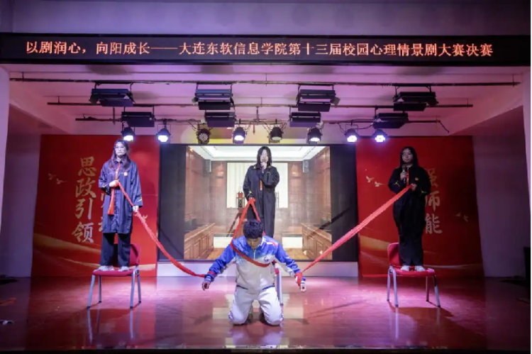 为进一步丰富校园心理文化生活,引导同学们关注自身心理健康,学会接纳自我、与自我和解,大连东软信息学院第十三届校园心理情景剧大赛决赛圆满落幕。学院选送的《面具之下》与《审判》两部心理情景剧作品凭借深刻的主题立意、精彩的舞台演绎,双双荣获校级大赛二等奖,用舞台的形式诠释心理成长,展现了学院学子对心理健康的深刻思考与表达能力。
