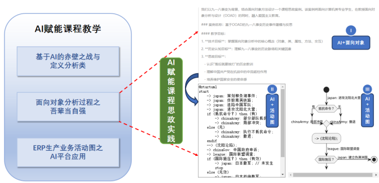 立足科技自立自强的战略导向,课程组将社会责任与科技伦理深度嵌入专业教学。课程环节以历史经典案例为情境,引导学生借助AI进行系统定义与类图分析,在逻辑建模中培育文化自信与战略思维;融入“吾辈当自强”的价值内核,激励学生以技术报国;结合AI平台应用,强化国产软件与自主可控意识。同时,利用AI生成的业务流程图辅助学生直观理解业务流程再造,提升实践效率。课程贯穿“技术为善”主线,引导学生紧扣国家数字化转型需求,将科技报国理念内化于心、外化于行。